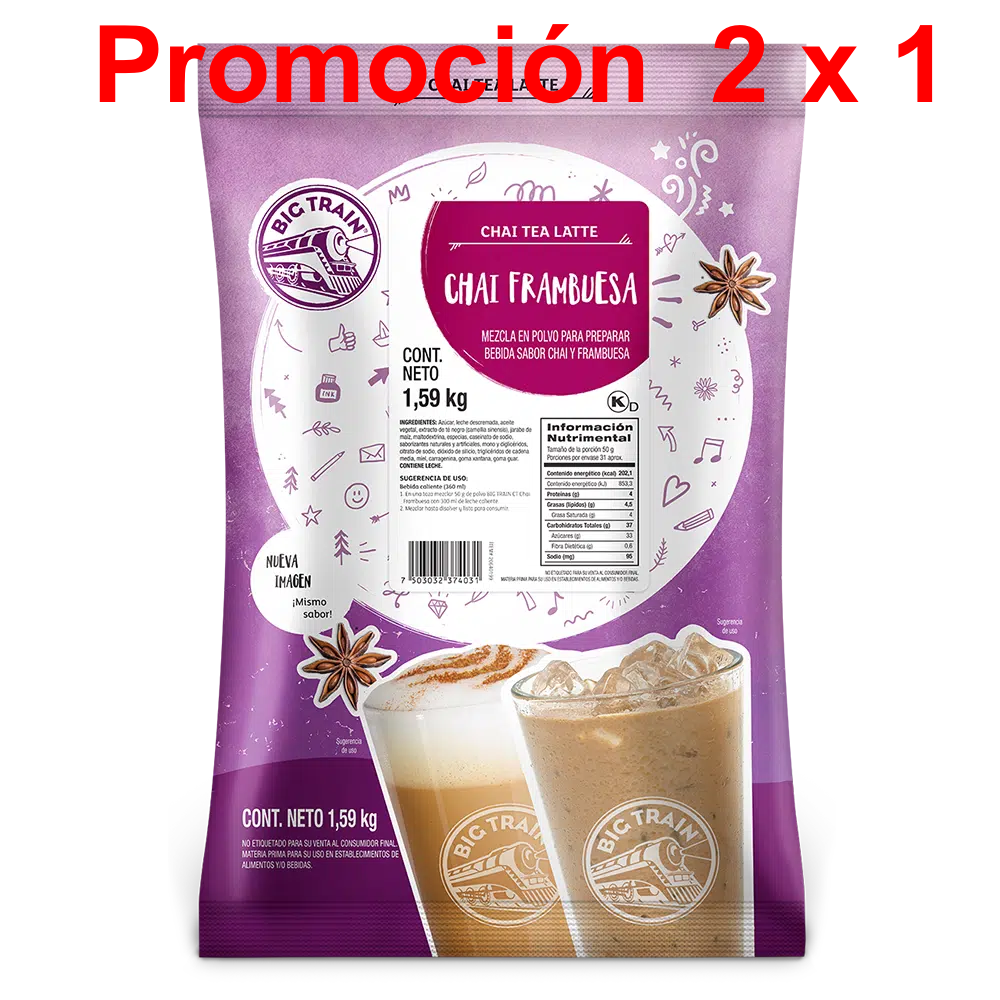 Disfruta esta deliciosa bebida inspirada en las bebidas tradicionales de la India. Refréscate con el delicioso sabor del té negro con frambuesa, miel y especias (cardamomo, clavo, pimienta, anís, jengibre y canela). El Té Chai Frambuesa (Raspberry Chai Tea Latte) de Big Train puede ser preparado con agua o con tu leche favorita. Disfrútalo caliente, frío o en frappé. Ánimate!